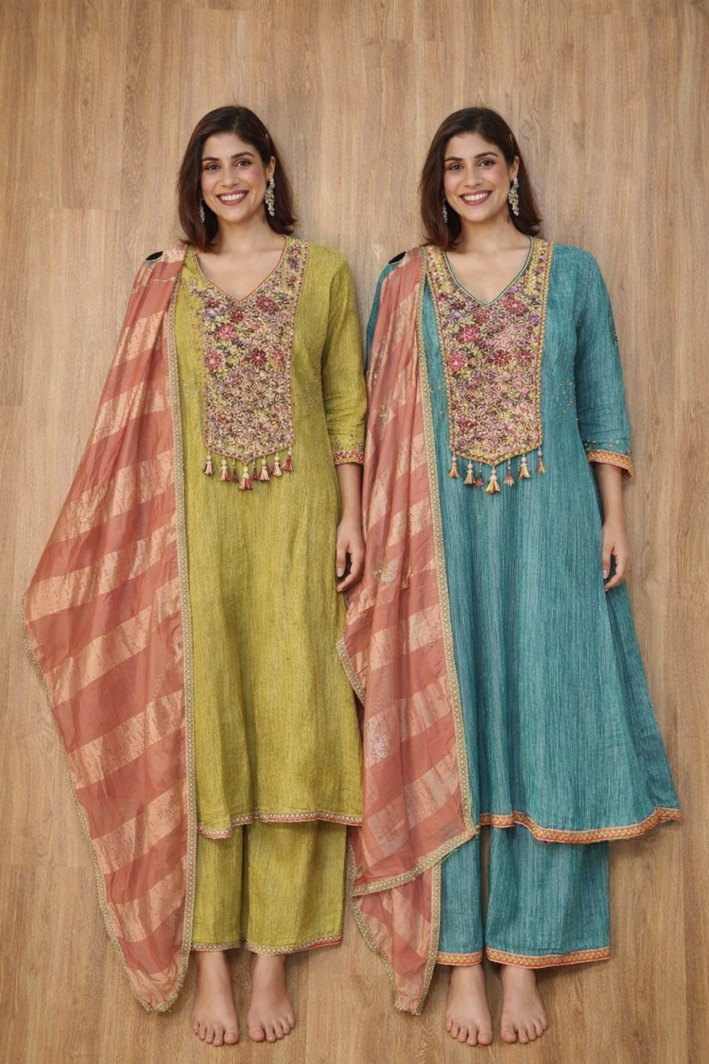 Fabric: Soft textured silk-blend fabric with a rich, festive fall