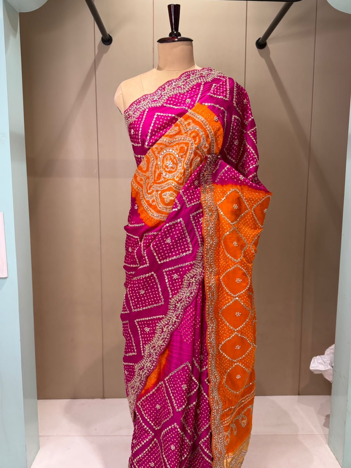 pure Bandhani Saree in beautiful pink and orange colour!!