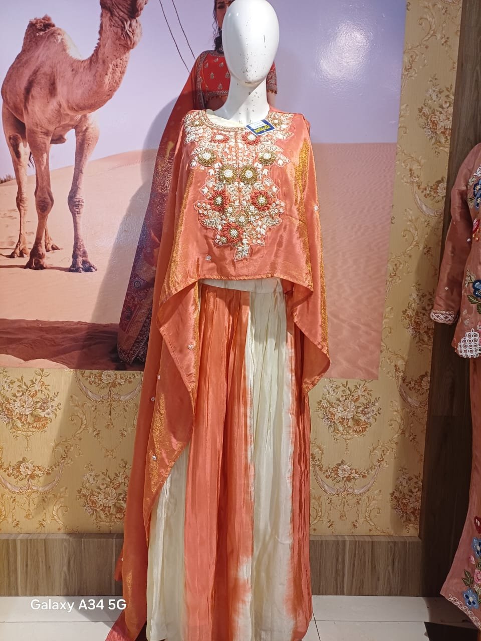 Style: Elegant fusion wear combining traditional embroidery with contemporary drape
