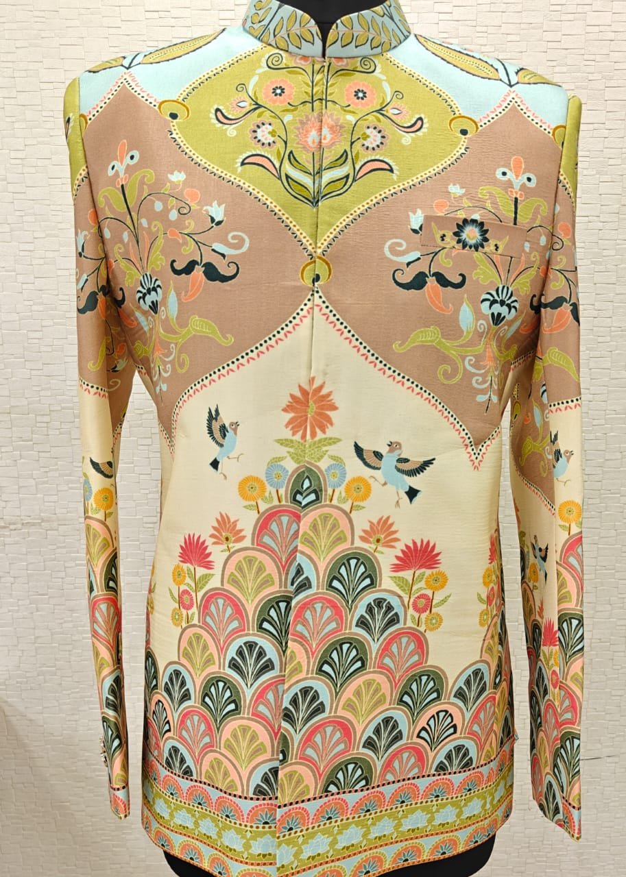 The design is beautifully arranged in panels, giving it a heritage Rajasthan–Mughal fusion look.